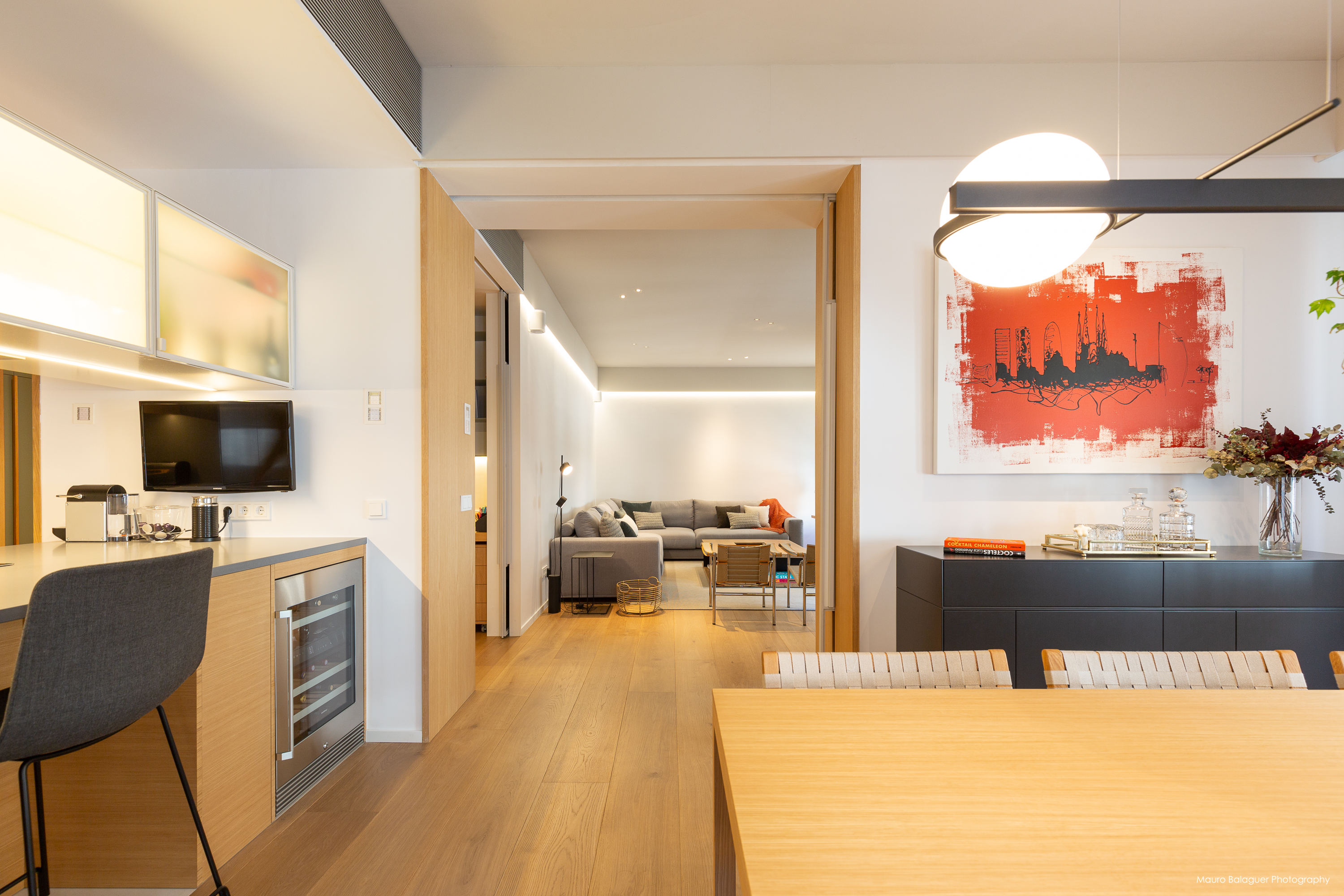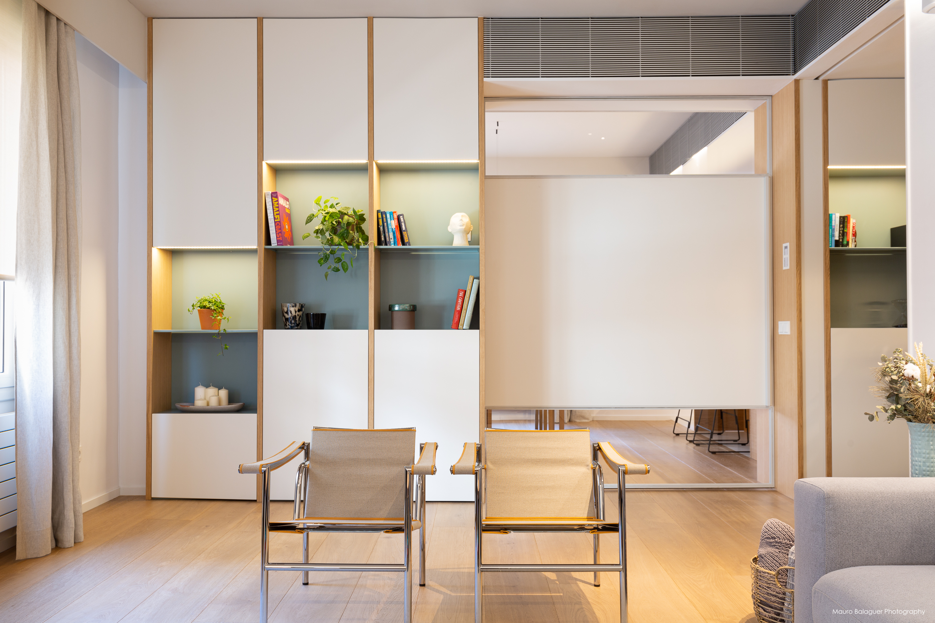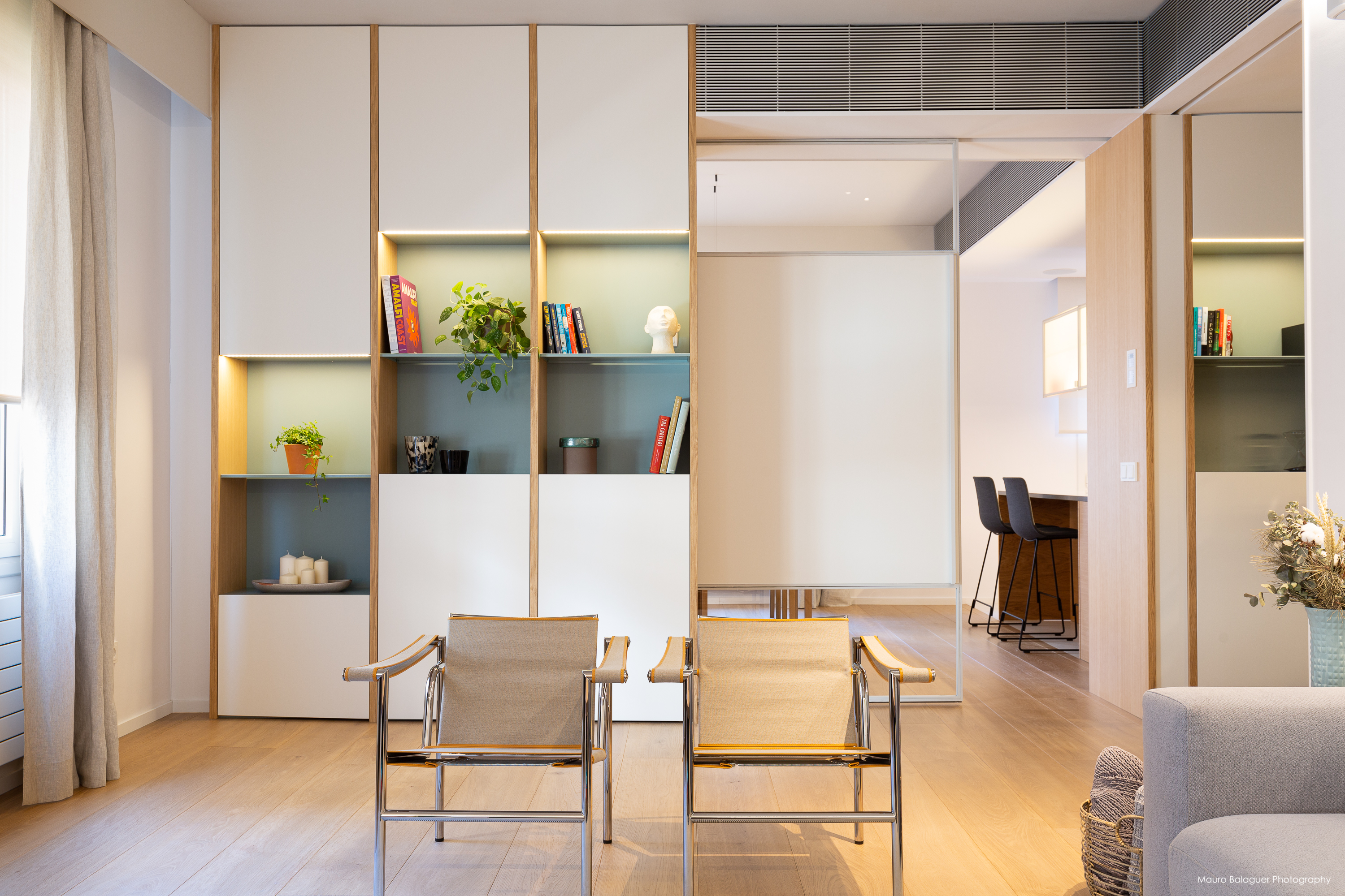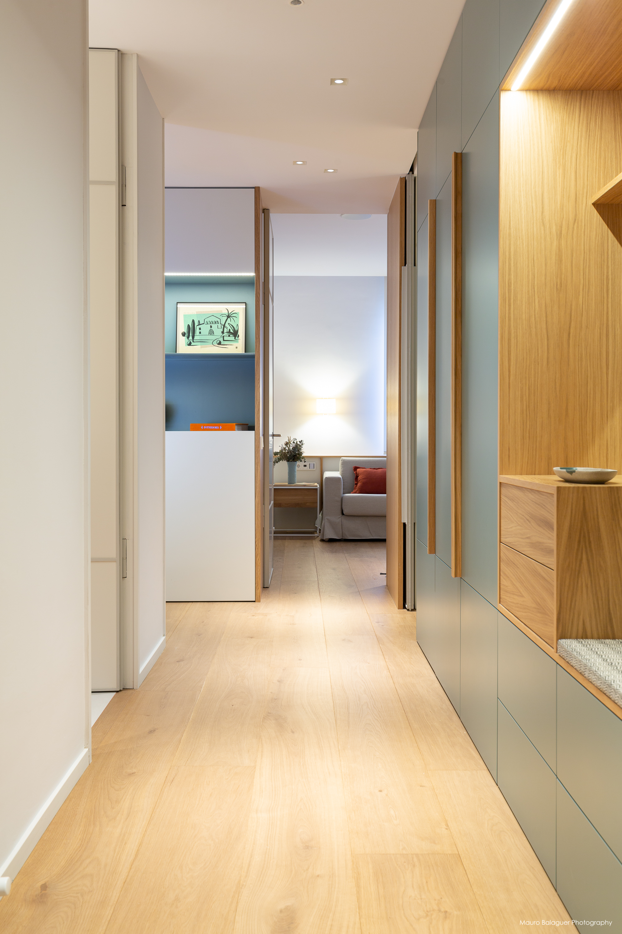 Vivienda familiar con líneas minimalistas, con el color como principal elemento. Proyecto completo de arquitectura, interiorismo, mobiliario e iluminación.