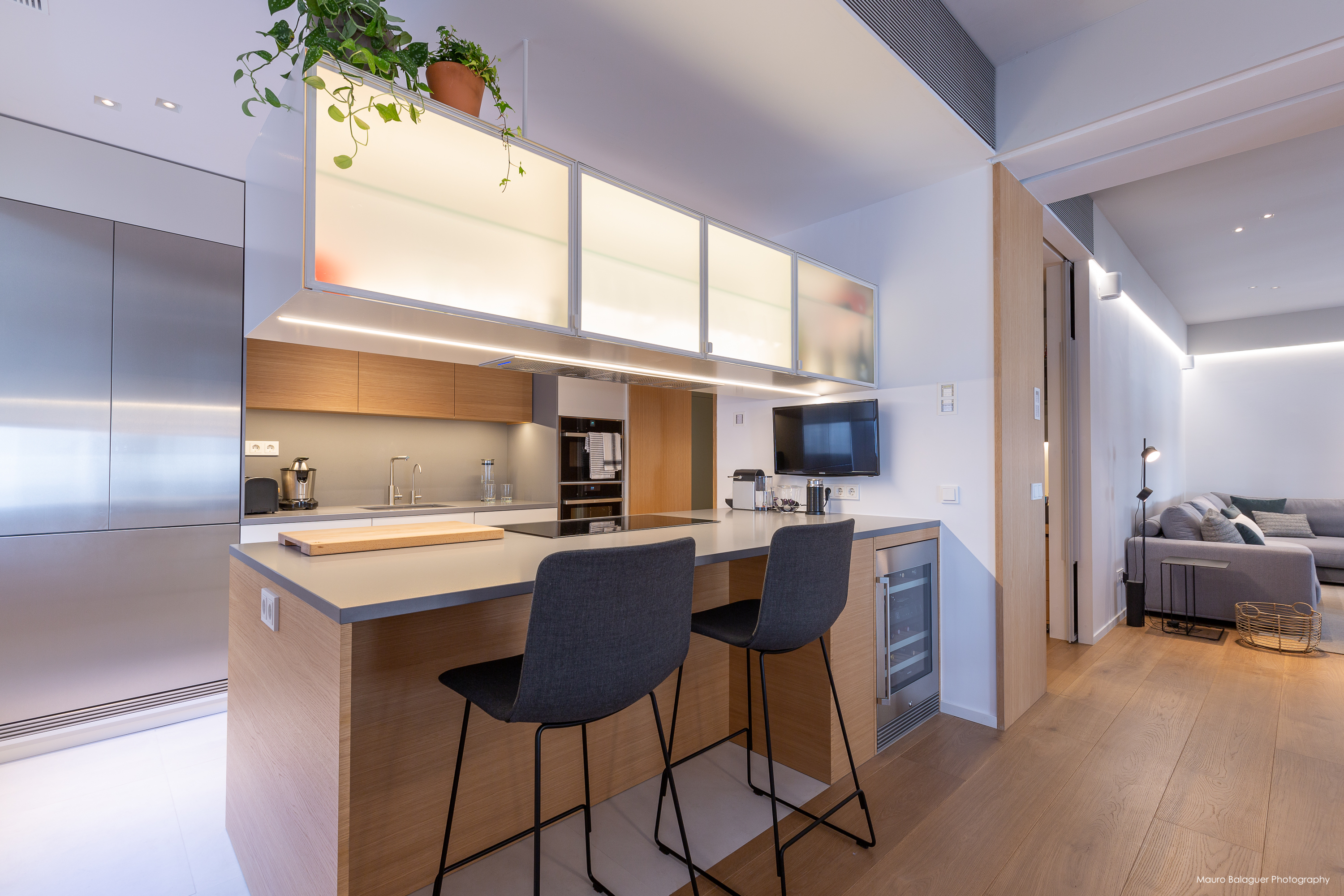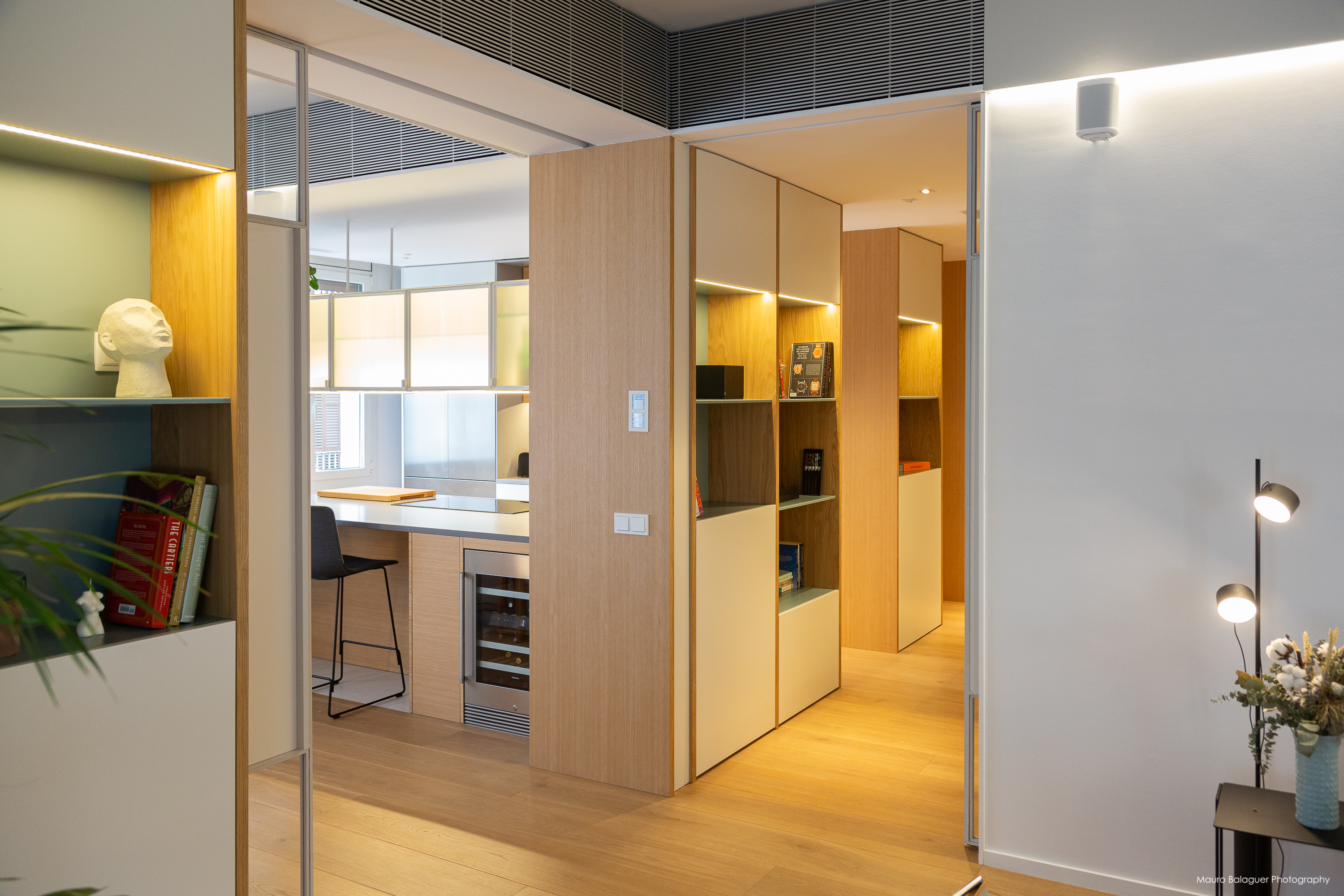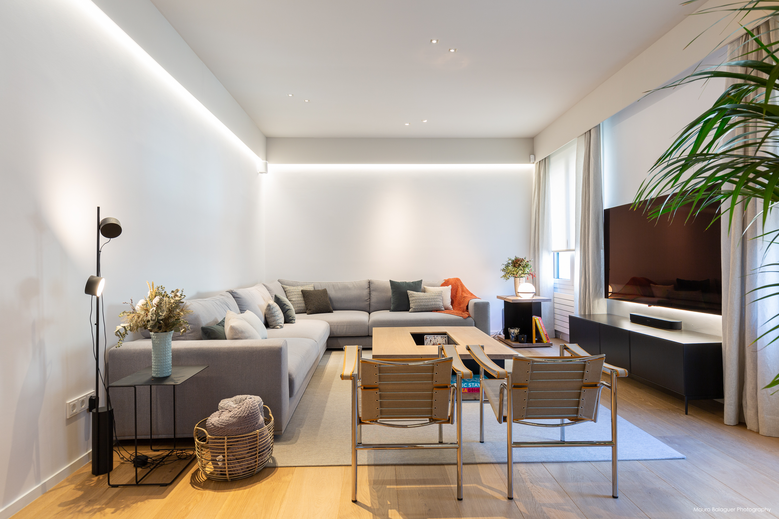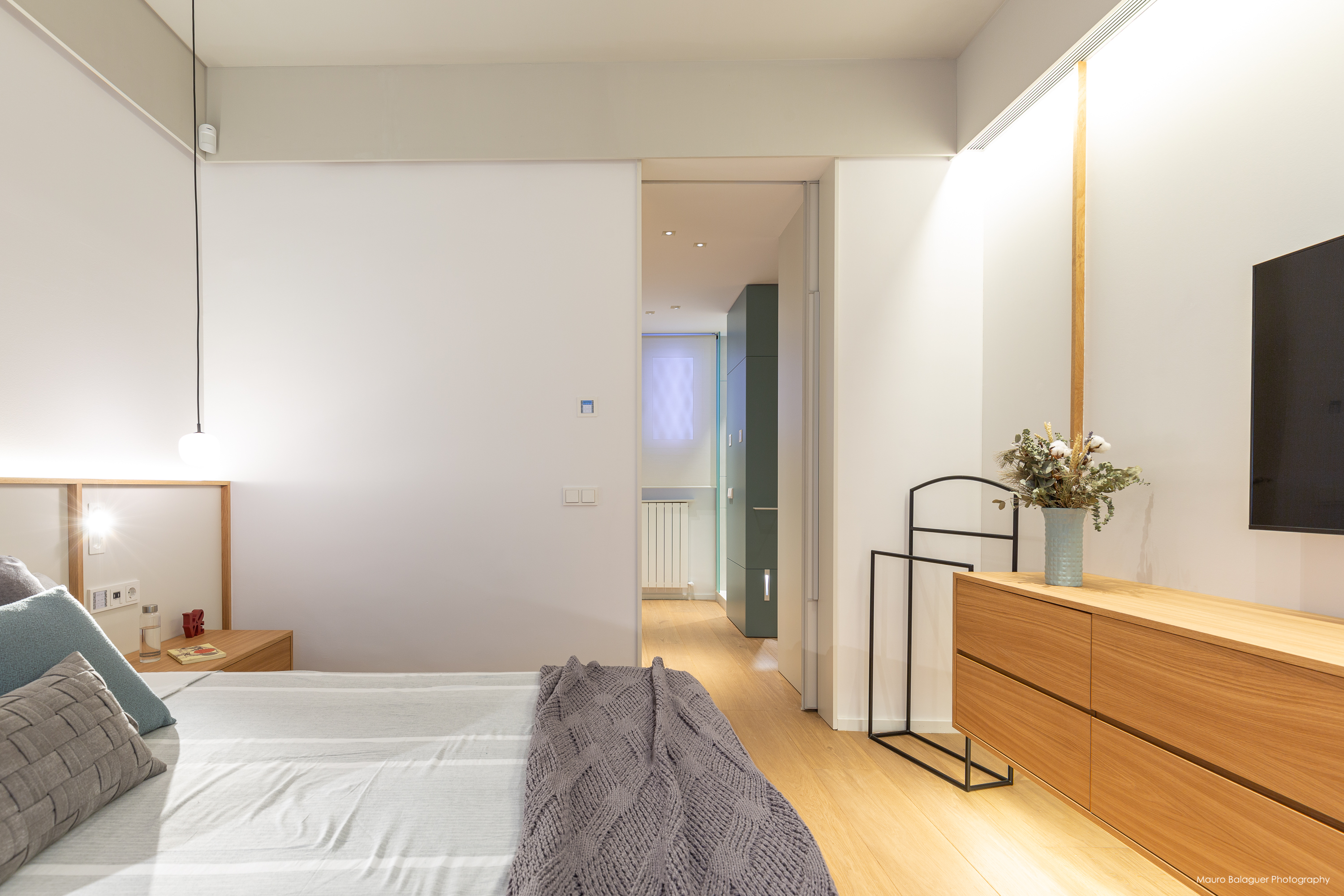 Vivienda familiar con líneas minimalistas, con el color como principal elemento. Proyecto completo de arquitectura, interiorismo, mobiliario e iluminación.