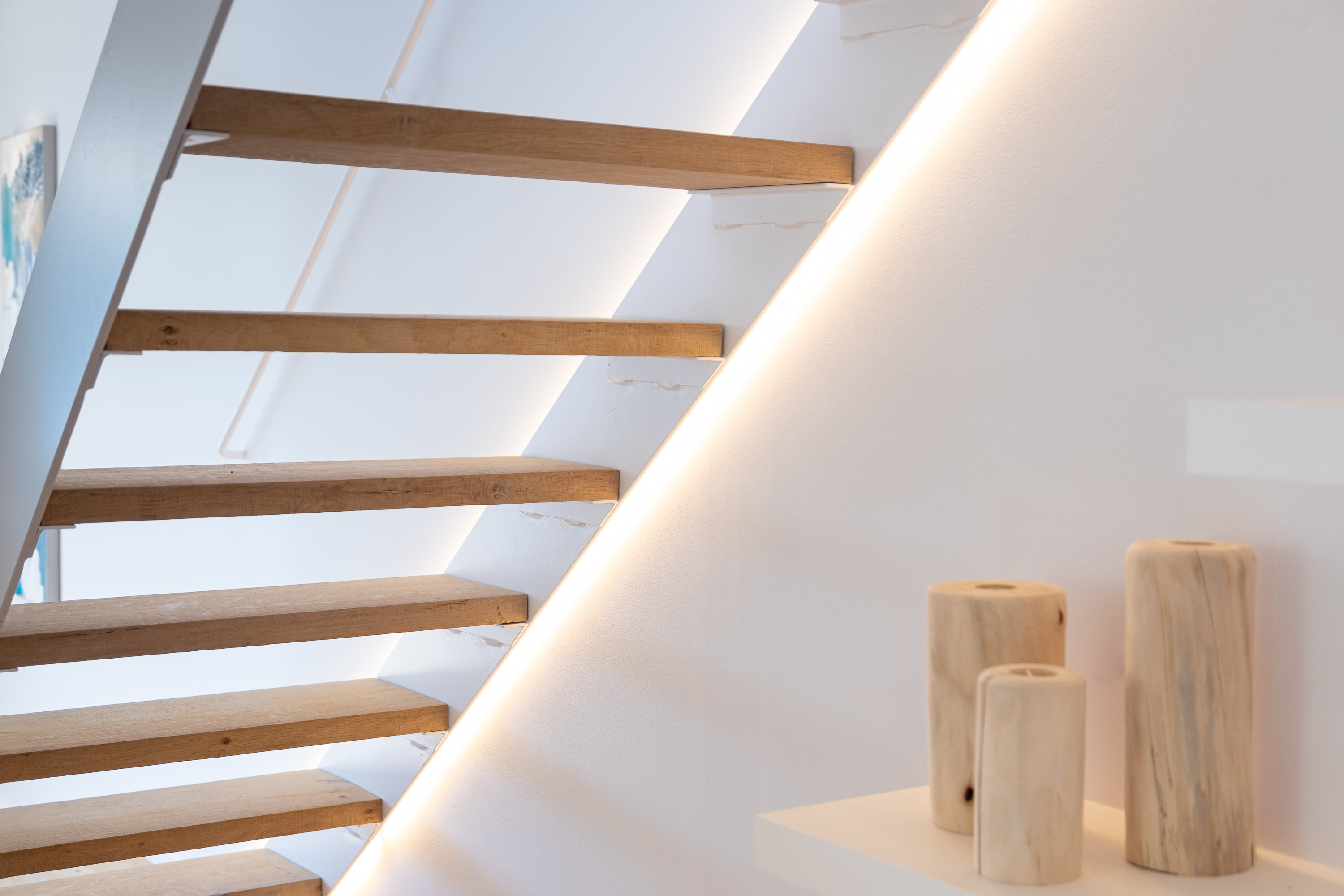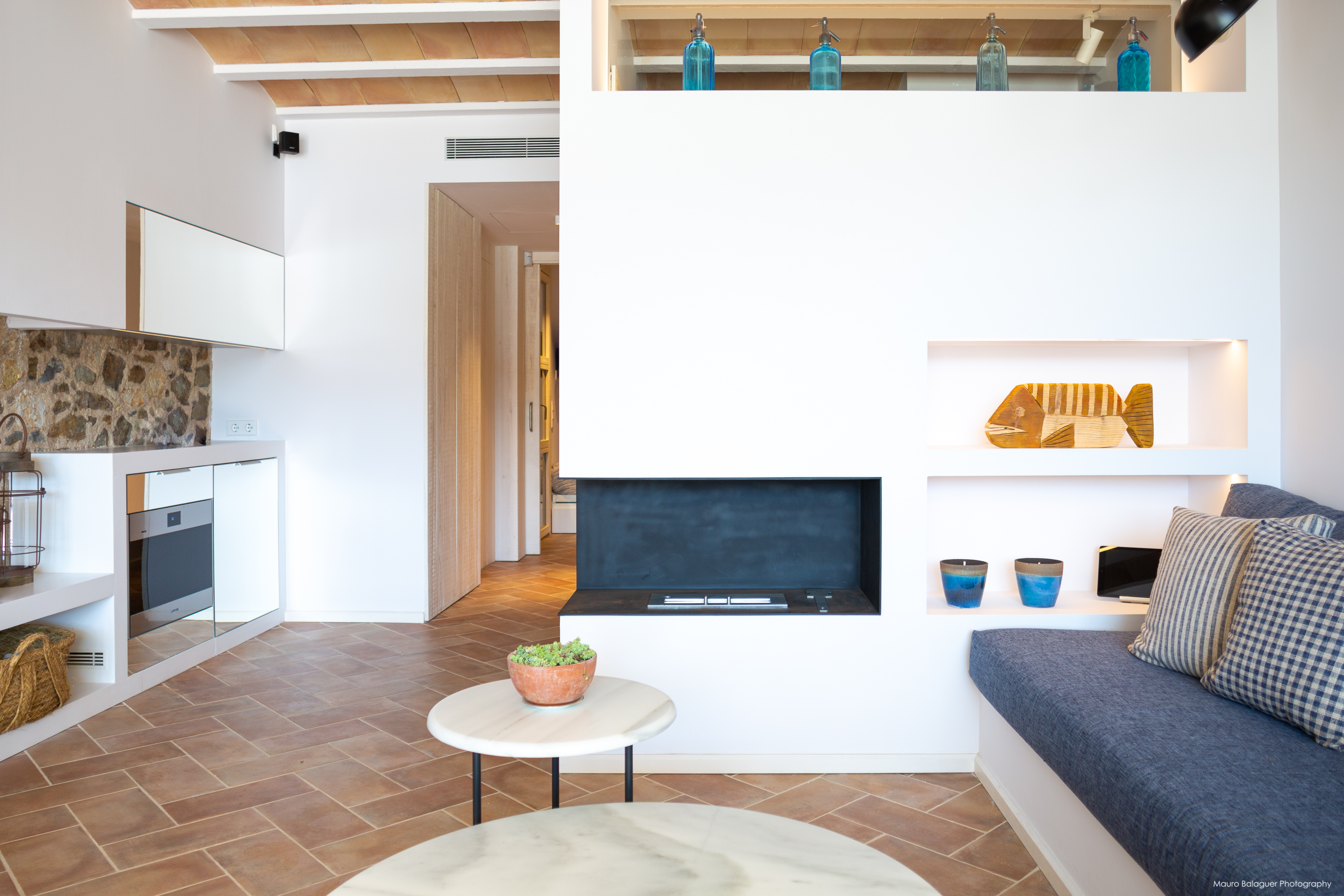 Reforma integral de vivienda unifamiliar en Palafrugell, Girona. Proyecto completo de arquitectura, interiorismo, mobiliario e iluminación. Arquitectura minimalista, de líneas rectas y limpias con referencia del Empordà.