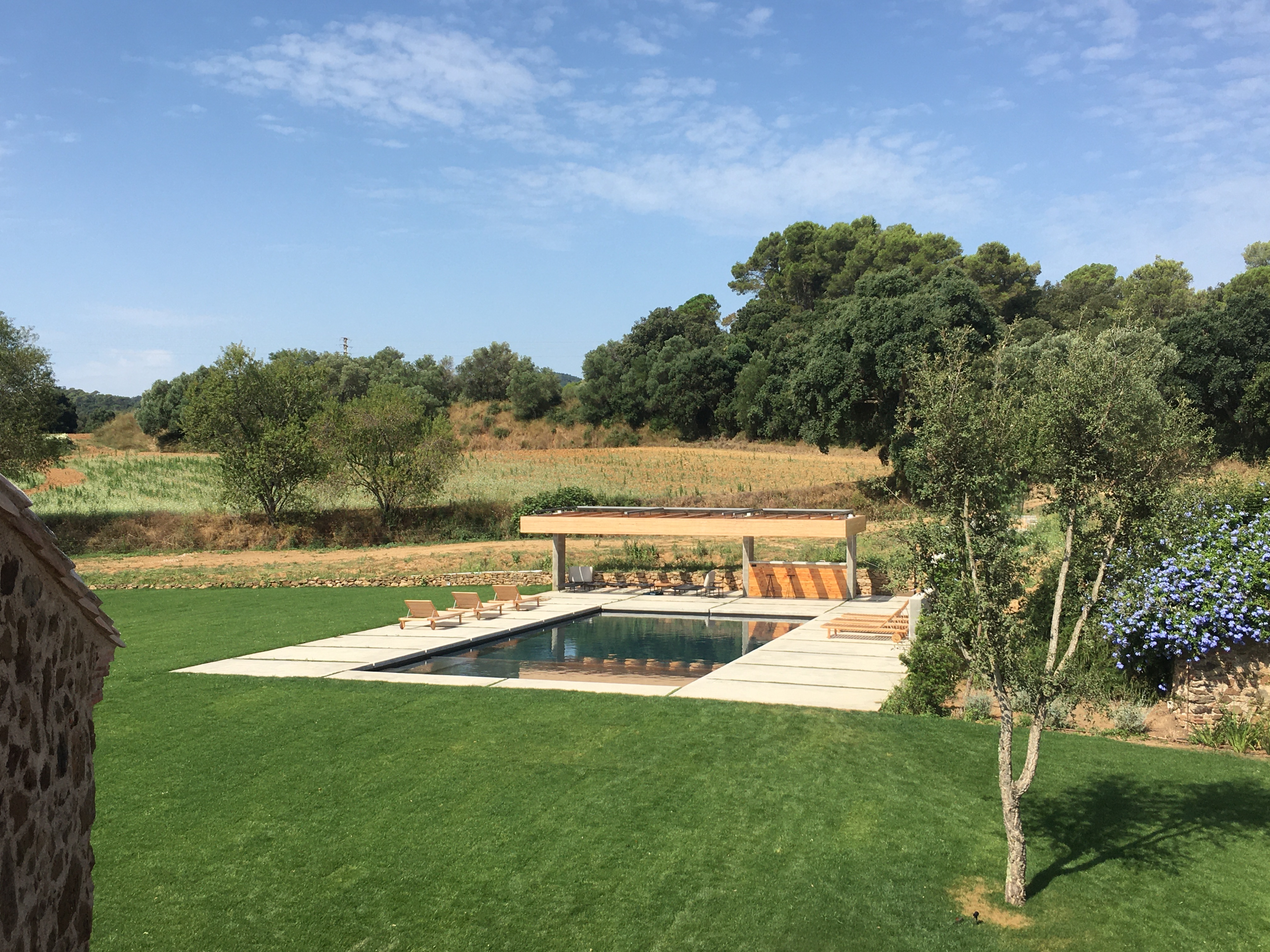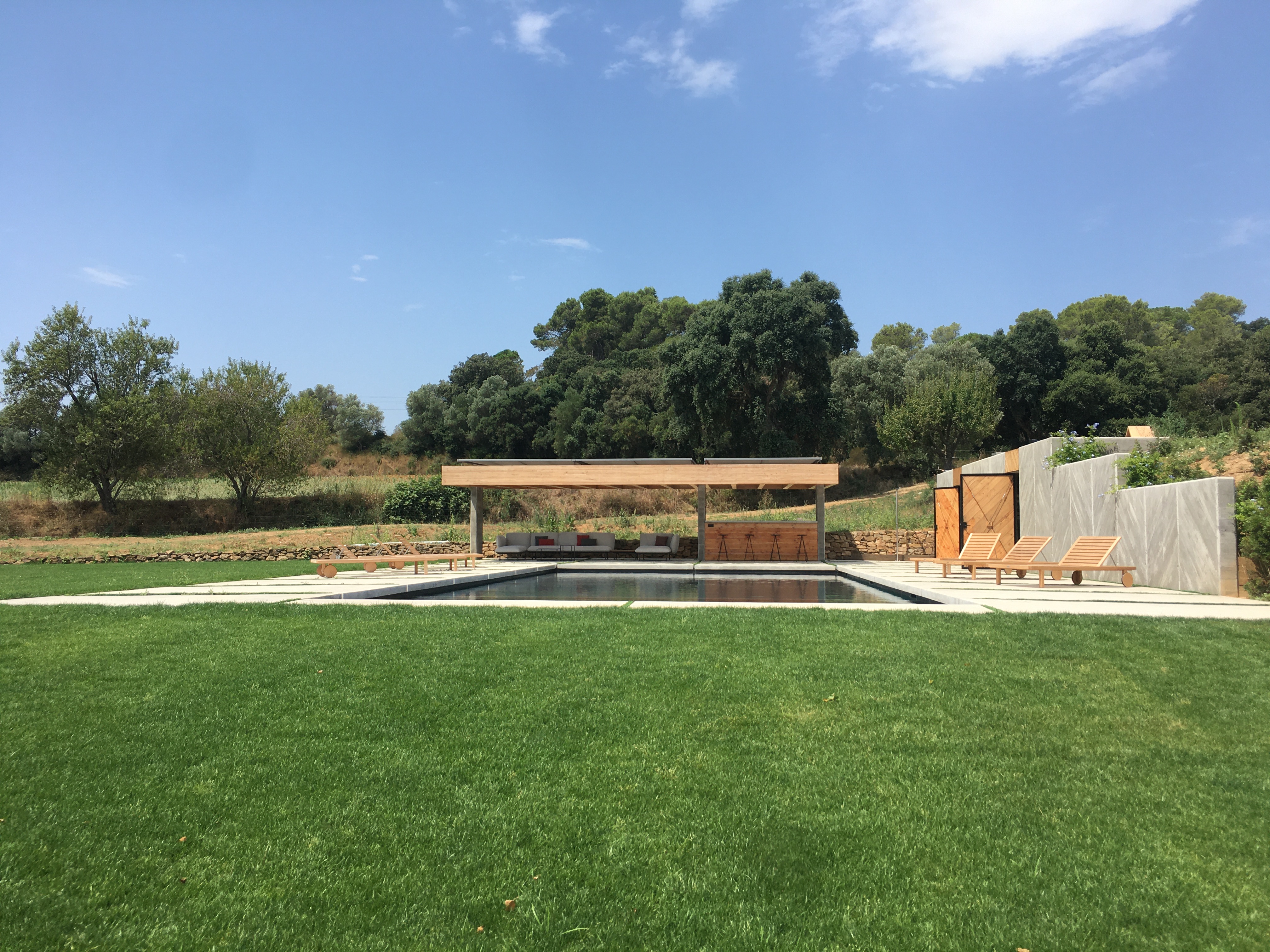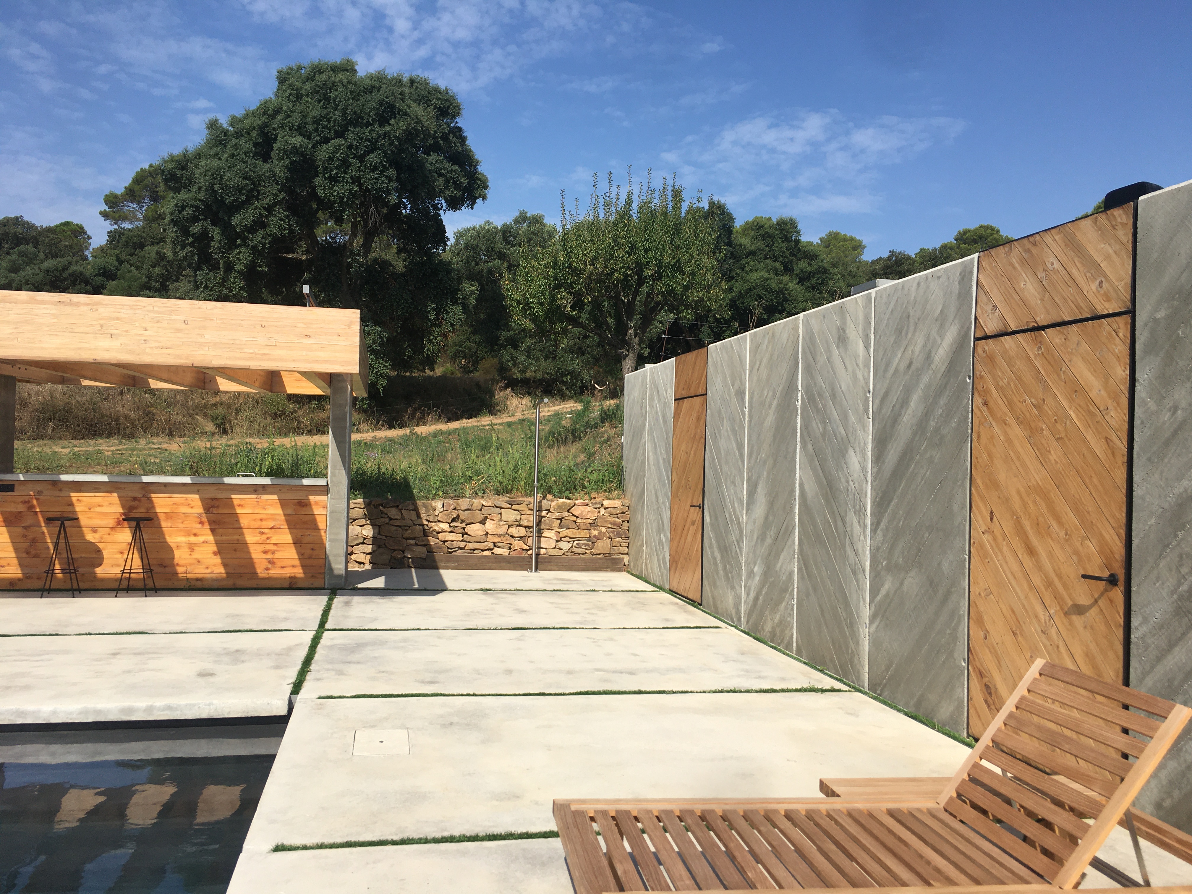 Reforma integral de una Masía situada en Palafrugell, Girona. Proyecto completo de arquitectura, interiorismo, mobiliario, iluminación y paisajismo. Arquitectura minimalista, de líneas rectas y limpias tanto en exteriores cómo interiores. «Bloques» de colores como hilo conductor de todas las estancias de la vivienda.