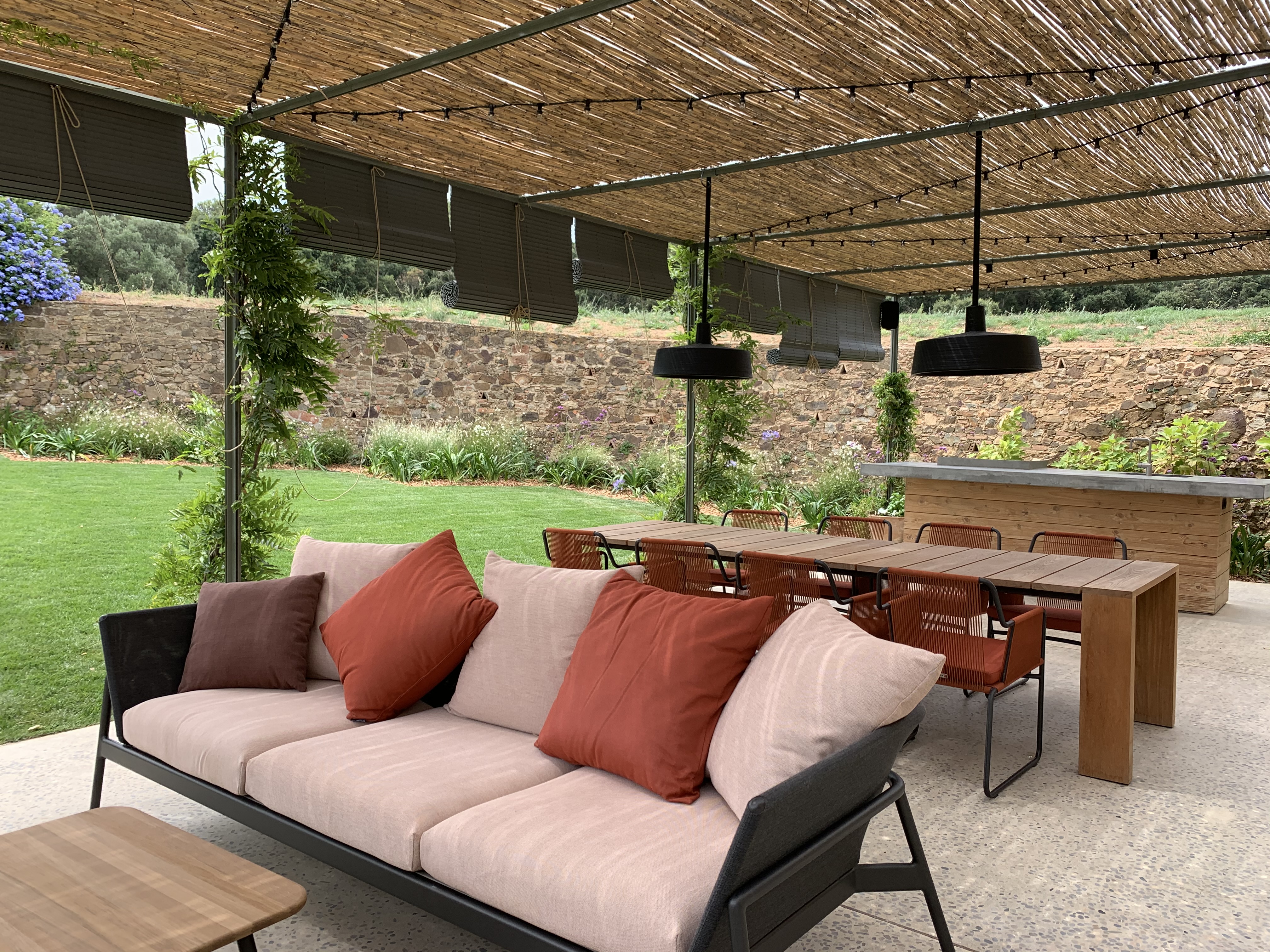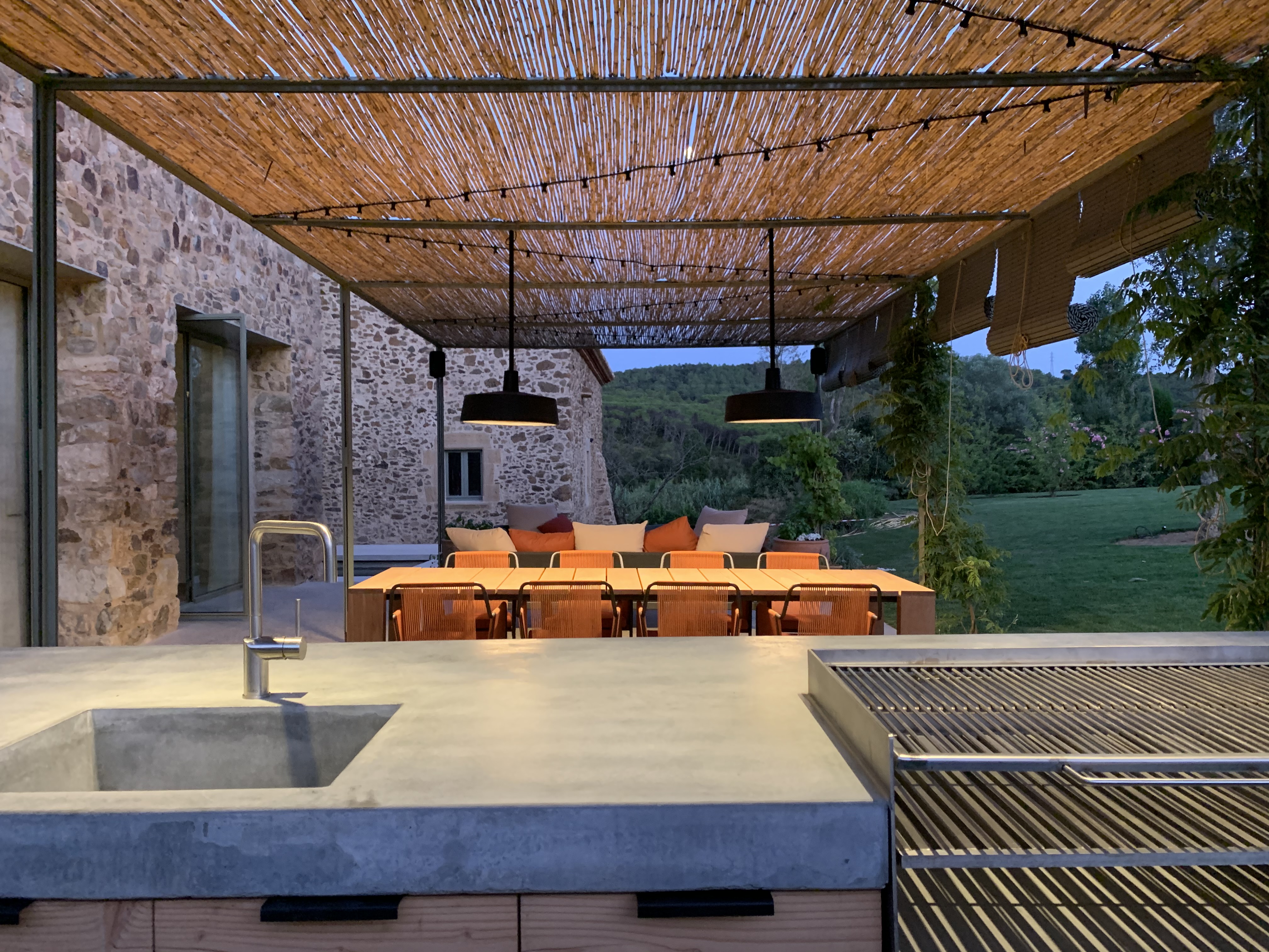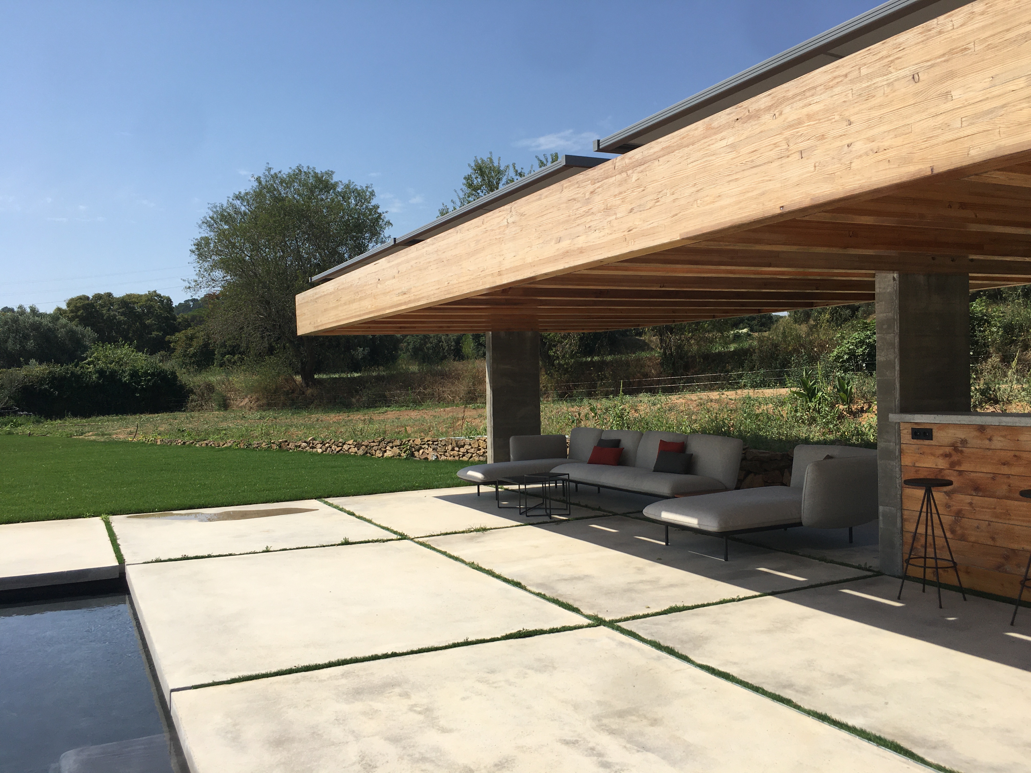 Reforma integral de una Masía situada en Palafrugell, Girona. Proyecto completo de arquitectura, interiorismo, mobiliario, iluminación y paisajismo. Arquitectura minimalista, de líneas rectas y limpias tanto en exteriores cómo interiores. «Bloques» de colores como hilo conductor de todas las estancias de la vivienda.
