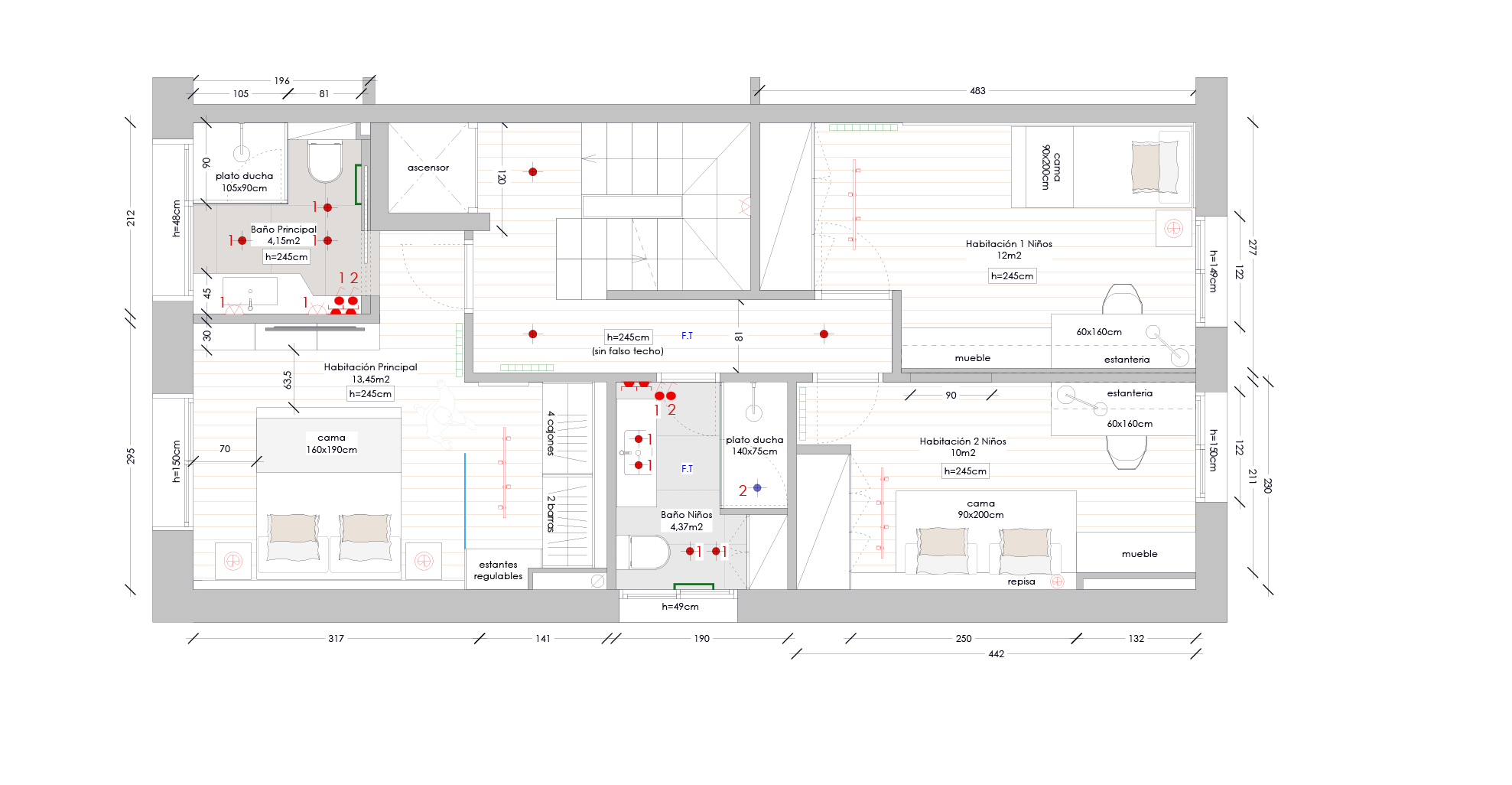 Formada por tres plantas, se realizó la reforma sin tocar casi la tabiquería, como solicitó el cliente.