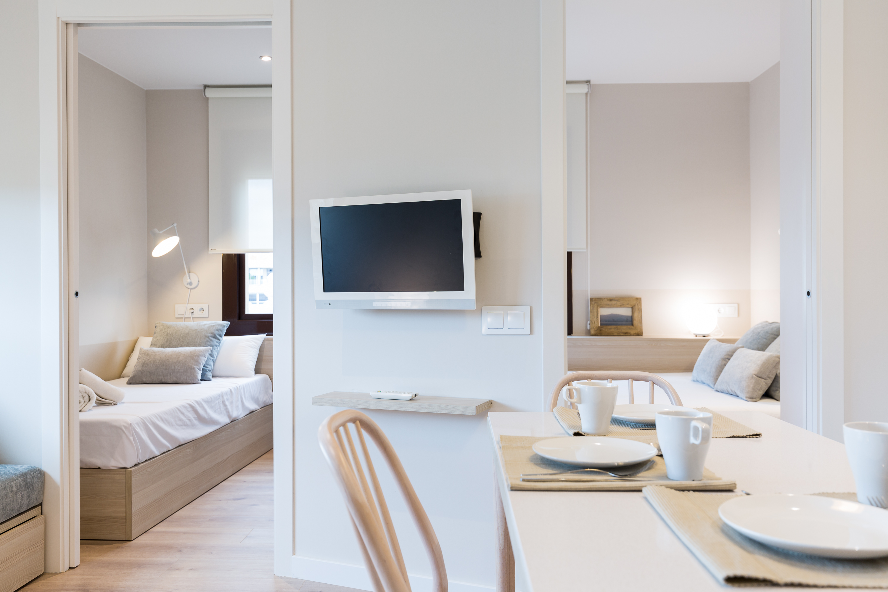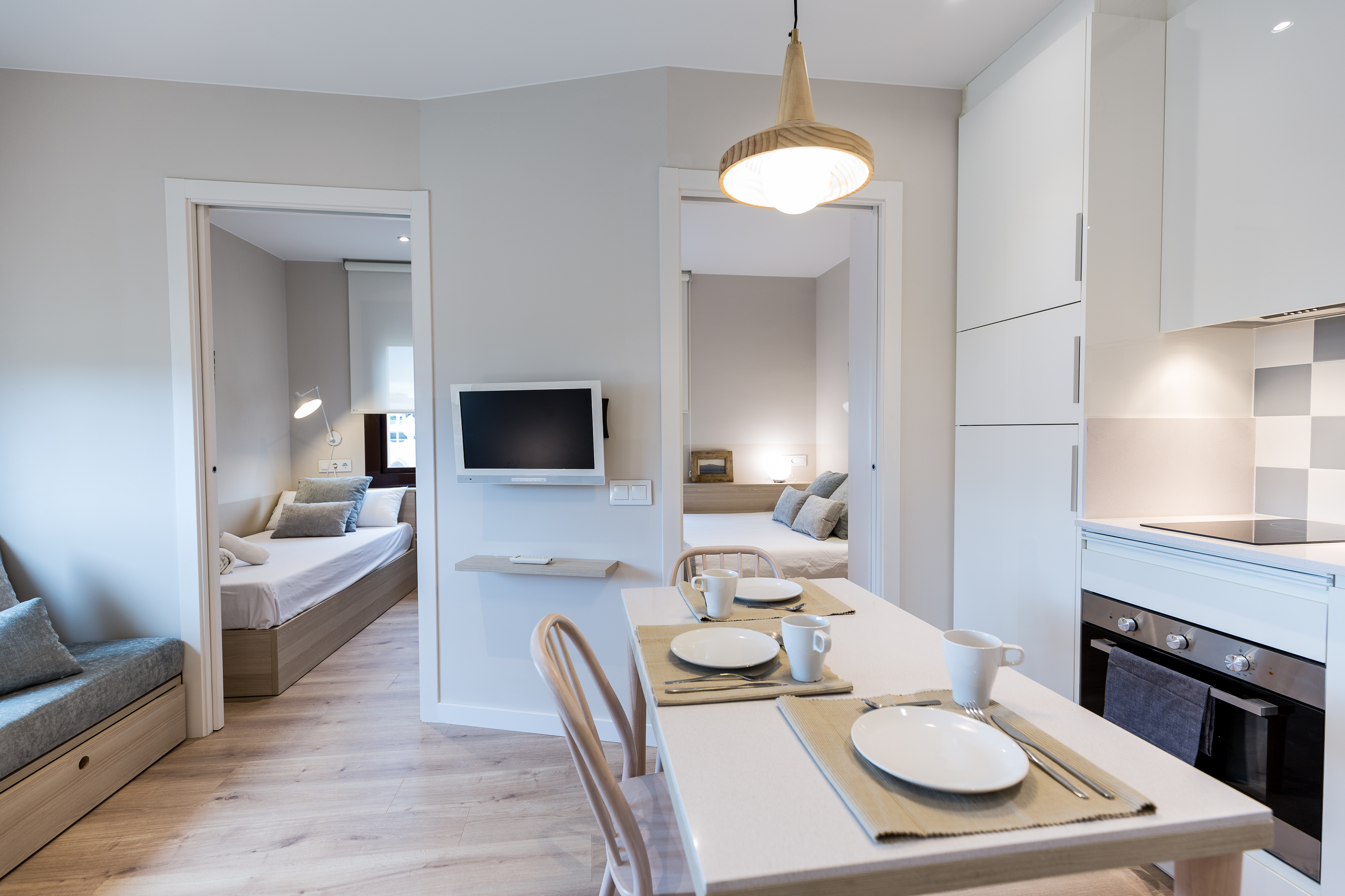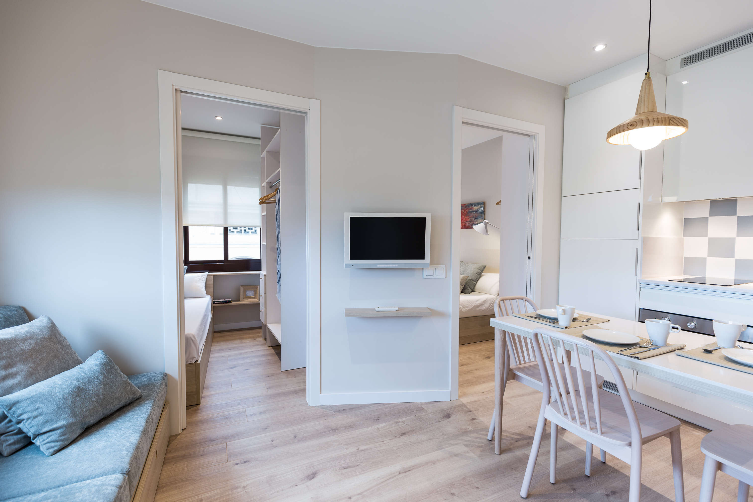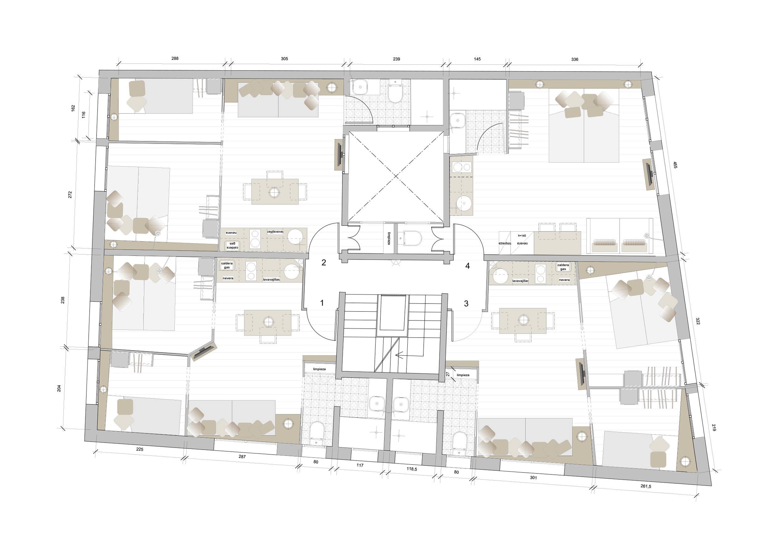 Bloque de viviendas destinado a apartamentos turísticos de corta y larga estancia. Cuatro tipologías de apartamento con distribuciones ligeramente diferentes pero acabados iguales.
