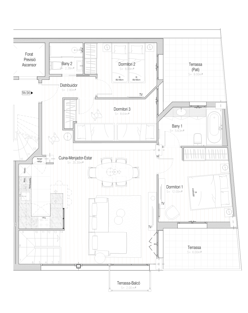 Viviendas destinadas a la venta, con 3 dormitorios, 2 baños, terraza o jardín.
